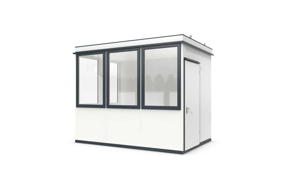 Systém vonkajších buniek a kancelárií MultiRoom Outdoor je určený na inštaláciu vo vonkajšom prostredí, napríklad ako vrátnica, kancelária, alebo odpočinková miestnosť. Vďaka jednoduchej a štandardizovanej konštrukcii je možné tieto priestory zrealizovať v krátkej dodacej lehote a cenovo výhodne. Steny sú sendvičové prvky, vonkajší plášť z pozinkovaného oceľového plechu s práškovým nástrekom šedobielej farby RAL 9002. Jednoduché zasklenie ESG, hr. 5 mm v hliníkovom ráme. Vnútorné obloženie stien z bielych drevovláknitých dosiek. Vnútorná izolácia stenových prvkov 40 mm hrubou vrstvou minerálnej vlny. Podlaha je zo šedého PVC.