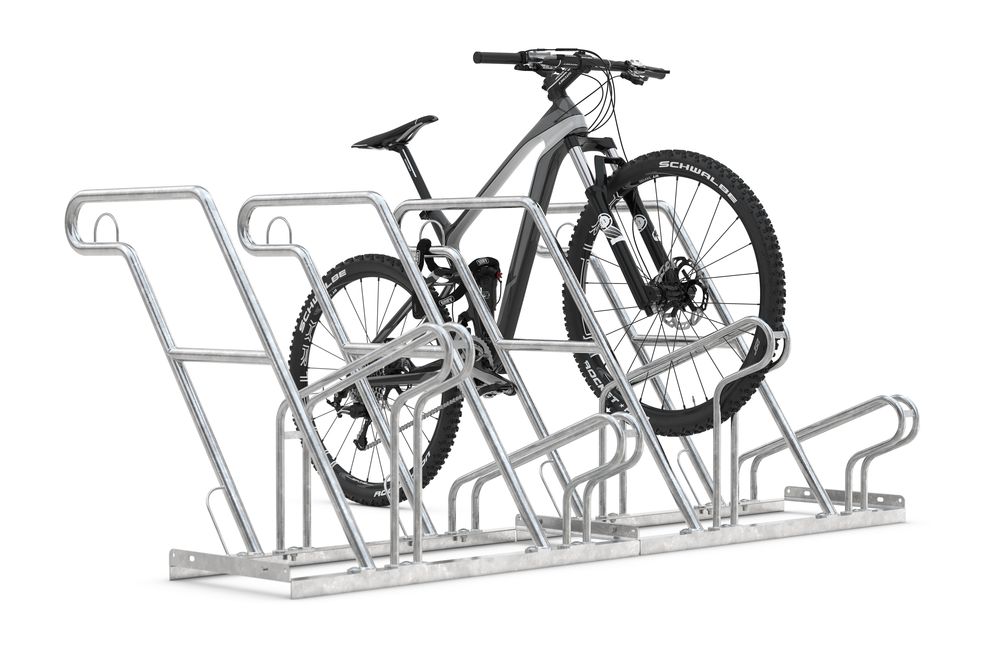 Tento parkovací systém pre bicykle víta svojich užívateľov vodorovnými opornými oblúkmi vo výške bokov. Toto usporiadanie robí bezpečné parkovanie aj tých najcennejších kolies, ešte pohodlnejším. medzi kolesami 500 mm, pri obojstrannej verzii 540 mm, ponúka najvyšší komfort parkovania pre zamestnancov, zákazníkov a pre samotného majiteľa. Striedavé nastavenie vysokého a nízkeho státia šetrí cenné miesto. krádeži podľa DIN 79008:2016-05 bod 7.2. Farba: Strieborná;