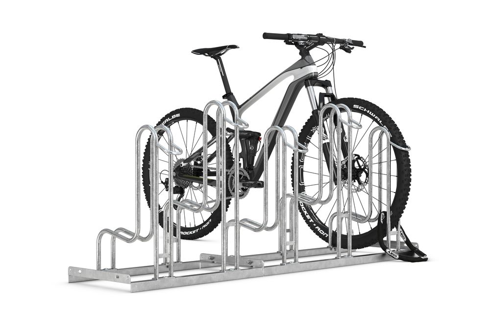 Stojan na bicykle 4000 ponúka miesto pre bicykle so šírkou pneumatík až 55 mm. Rozteč medzi kolesami je 350 mm. Extrémne vysoké parkovacie oblúky zabraňujú ohýbaniu kolies as tým spojenému poškodeniu ráfikov. Zároveň ponúkajú možnosť pripevnenia zámkov. Parkuje sa s výškovým posunom alebo na prianie aj obojstranne, aby sa ušetrilo cenné miesto. Hĺbka parkovacieho priestoru je pri jednostrannom státí cca 1 850 mm, pri obojstrannom cca 3 200 mm. Rýchlo dodané balíkovou službou a ľahko zmontovateľné, umožňujú tieto stojany vytvoriť parkovisko pre moderné bicykle. Zemné kotvy a podlahové montážne uholníky sú k dispozícii ako voliteľné príslušenstvo. Farba: Strieborná; Povrchová úprava: Žiarový zinok Konštrukcia: Skrutkované / sada; Mareriál: Oceľ Typ montáže: Voľne stojaci Obojstranný Rázvor kolies: 350 mm ; Šírka pneumatiky: 55 mm