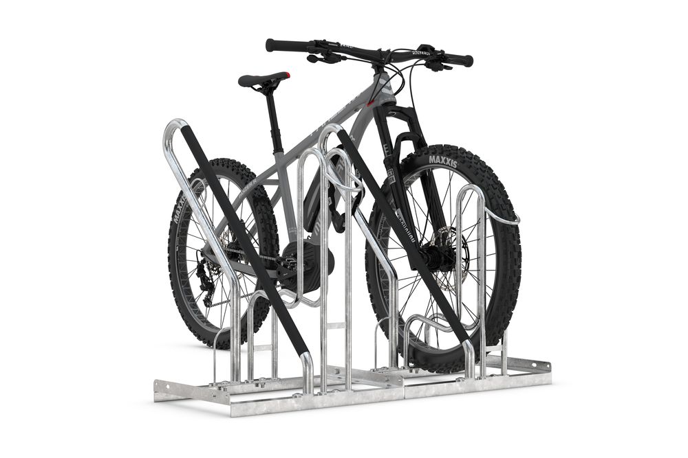 Oporný stojan 4801 XXBF ponúka jedno parkovacie miesto pre bicykle s pneumatikami so šírkou až 70 mm, vďaka čomu je možné bezpečne parkovať aj bicykle s extra širokými plášťami. Bezpečnosť bicykla je pritom zaručená: plastová ochrana proti nárazu chráni rám bicykla pred poškodením. Oporný oblúk zaisťuje, že sa koleso neprevráti. A oceľové okrúhle oká slúžia ako upevňovací bod pre zámky na bicykle. Tento stojan na bicykle je pripravený na pripevnenie k zemi a na spojenie s ďalšími kusmi tohto modelového radu, čím vzniká radové usporiadanie s ľubovoľným počtom parkovacích miest, ktoré je možné aj dodatočne rozširovať. Model je k dispozícii vo variante pre vysoké a nízke nastavenia. Pri radovom usporiadaní je možné striedavým použitím vysokého a nízkeho nastavenia optimálne využiť dostupný priestor, pretože bicykle môžu stáť bližšie pri sebe bez toho, aby sa dotýkali. Farba: Strieborná; Povrchová úprava: Žiarový zinok Konštrukcia: Skrutkované / sada; Mareriál: Oceľ Typ montáže: Voľne stojaci Jednostranný Rázvor kolies: 500 mm ; Šírka pneumatiky: 70 mm