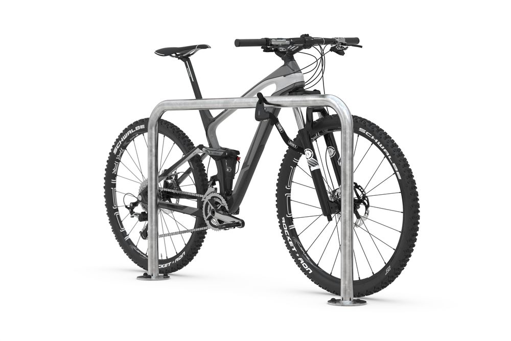 oporným oblúkovým stojanom 9100 rýchlo vytvoríte pohodlné parkovacie miesta pre bicykle s vysokou stabilitou a ochranou proti krádeži. Ideálne pre intenzívne využívané parkoviská zamestnancov, hostí, zákazníkov alebo žiakov. Oporné oblúky z pozinkovanej oceľovej rúrky s priemerom 48 mm s antikoróznou ochranou, ktoré je možné montovať v ľubovoľnej vzdialenosti, umožňujú pohodlné parkovanie všetkých typov a veľkostí bicyklov. Dobré vedieť: Pri verziách na priskrutkovanie je na vyžiadanie k dispozícii predĺženie stĺpika (+200 mm) na účely prekrytia dlažbou. Farba: Strieborná; Povrchová úprava: Žiarový zinok Konštrukcia: V jednom kuse; Mareriál: Oceľ Typ montáže: Montáž na podlahu Obojstranný
