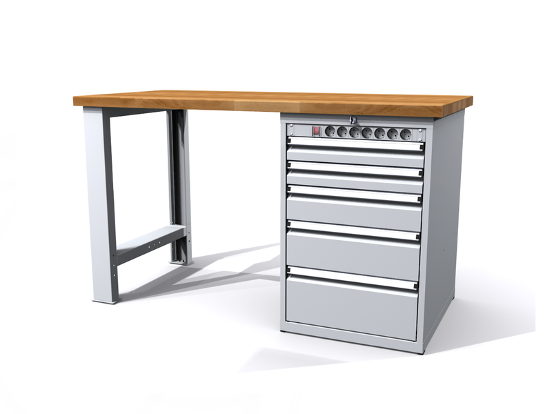 1 x DKP 2727 17U 5K EH - Kontajnery pre pracovné stoly. Profesionálne dielenský päťzásuvkové kontajner pracovného stolu s integrovanou zásuvkovú lištou 27E x 27E x 17U