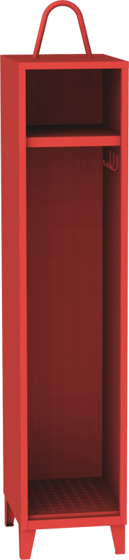 Jednooddielová kovová šatníková skriňa pre hasičov Šatníková skriňa pre hasičov, na nohách, s perforovaným dnom. Skriňa je vybavená tyčou na šaty, masívnym hákom na opasok a držiakom prilby. Zváraný korpus z oceľového plechu hr. 0,7 mm zaručuje vysokú tuhosť a minimalizuje náročnosť na montáž.