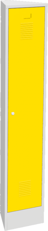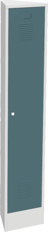 Trojuholníková priestorovo úsporná kovová šatníková skriňa Šatníkové skrine radu RAS majú jedinečný trojuholníkový tvar 45°. otočný stĺp „hniezdo“ šatníkových skríň. pre účinné odvetranie a prelisom s papierovou menovkou. Dvere sú zavesené na vonkajších pántoch, na prianie zákazníka je možné zavesenie aj na vnútorné čapy. vymeniť za dvojplášťové. Šatníková skriňa je štandardne vybavená cylindrickým zámkom s dvomi kľúčmi alebo otočným uzáverom pre visiaci zámok (visací zámok nie je súčasťou dodávky). Zamykanie dverí je jednobodové, umiestnené uprostred dverí. a umožňuje dodanie hlavného kľúča. otočným uzáverom sú vystužené proti pretočeniu uzáveru vo dverách. Dvere šatníkové skrine sú štandardne vybavené výstuhou pre zvýšenie odolnosti. otočný uzáver vyššej triedy.