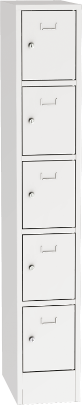 Kovová šatníková skriňa s uzamykateľnými schránkami Boxové skrine sú určené na úschovu osobných vecí, batohov, prezuvok a ďalších cenných predmetov. Pri súčasnom používaní šatníkovej skrine na oblečenie a uzamykateľnej schránky na osobné veci, odporúčame využiť možnosť odomykať ich rovnakým kľúčom. Dvere sú štandardne vybavené prelisom s papierovou menovkou, zavesené na vnútorných čapoch. Za príplatok je možné dvere vybaviť vetracími otvormi. Šatníková skriňa je štandardne vybavená cylindrickým zámkom s dvoma kľúčmi alebo otočným uzáverom pre visiaci zámok (visací zámok nie je súčasťou dodávky). Zamykanie dverí je jednobodové, umiestnené uprostred dverí. Za príplatok je možné skriňu vybaviť viacbodovým zamykaním a iným typom zámku (mincovým alebo elektronickým). Cylindrický zámok má 2000 kombinácií a umožňuje dodanie hlavného kľúča. Dvere vybavené otočným uzáverom sú vystužené proti pretočeniu uzáveru vo dverách. Za príplatok je možné skriňu vybaviť viacbodovým uzamykacím mechanizmom, štandardný otočný uzáver vymeniť za otočný uzáver vyššej triedy. Uzamykateľnú schránku je možné za príplatok vybaviť plastovou podložkou pod obuv na zachytenie vody a nečistôt. Šatníková skriňa je možné vybaviť šikmou strechou, tá zabraňuje odkladaniu odpadkov na strechu skrine a uľahčuje jej čistenie. Boxovú skriňu je možné doplniť súvisiacimi produktmi a tým veľmi zvýšiť jej úžitkové vlastnosti.