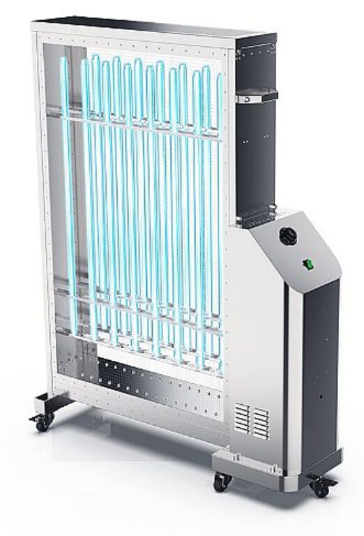 Otvorený obojstranný germicídny žiarič s výkonom UVc lámp nad 1.000 W. Pojazdný otvorený germicídny žiarič novej modernej koncepcie Microwave. výkonných trubíc bez elektród, iniciovanými iba mikrovlnným žiarením. Moderné trubice koncepcie Microwave prinášajú mimoriadne dlhú životnosť 30.000 ha výraznú úsporu elektrickej energie. CK1000 v základnej verzii neprodukuje žiadny ozón. Je možné na zákazku objednať aj verziu CK1000 s UVc trubicami generujúcimi ozón O3. V prípade použitia tejto verzie je potrebné priestor pred pobytom ďalších osôb dôkladne vyvetrať.