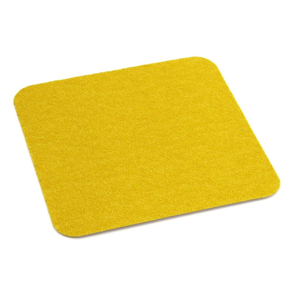 Žltá korundová protišmyková páska (dlaždice) Super - dĺžka 14 cm, šírka 14 cm, hrúbka 1 mm Protišmyková páska Super je vyrobená z hrubo granulovaného oxidu hlinitého so zrnitosťou, ktorá odoláva zanášaniu prachu, bahna i snehu a vytvára tak abra vyššou záťažou. Páska je teda vďaka svojim abrazívnym vlastnostiam vhodnejšia pre oblasti vystavené stálemu pokrytiu nečistotami alebo vodou ako sú napr. priemyselné alebo stavebné prostredie. Hrubosť na povrchu pásky zabraňuje jej zaneseniu, čo jej umožňuje poskytovať zodpovedajúcu ochranu proti sklzu aj v náročných prostrediach. Najčastejšie použitie priemyselnej, stavebnej oblasti náročné prostredie s výskytom prachu, bahna, snehu i ľadu Vlastnosti samolepiaca a protišmyková vrstva vodeodolnosť (na neporéznom povrchu) Technický popis farba: žltá materiál lineru: silikonizovaný papier materiál: PVC, akryl, oxid hlinitý (povrch) lep : akrylové dĺžka: 140 mm šírka: 140 mm hrúbka: 1 mm koeficient trenia: 99 TRL (suchý povrch), 80 TRL (mokrý povrch) priľnavosť k oceli: 1500? (g / 25,4 mm?; test PSTC-4) pevnosť v ťahu: 6? (kg / 25,4 mm?; 5600 ±200 (g; test PSTC-39) odolnosť voči vode: 10 mesiacov (test PSTC-35) odolnosť voči chemikáliám: 8 mesiacov (test PSTC-35) odolnosť voči motorovým olejom: vynikajúca (test PSTC-35) predĺženie po pretrhnutí : 25%? (test PSTC-31) prevádzková teplota: -40 až +80 °C odrážavosť svetla: ? 38.25 LRV (rozsah 3) hmotnosť: cca 20 g Montáž / inštalácia Pred použitím zaistite, aby bola páska skladovaná vo svojom obale (ak v ňom bola dodaná), v suchu a min. teplote 10 ° C. Pred nalepením je potrebné zbaviť cieľový povrch všetkých nečistôt a mastnoty. Nepoužívajte metylalkohol, benzín, kvapalinu do zapaľovača ani iné kvapaliny, ktoré by za sebou mohli zanechať mastný film. Povrch na nanesenie pásky by mal mať aspoň 10 °C (pokiaľ nie je uvedené v technických parametroch inak). Pórovité povrchy je nutné pred aplikáciou utesniť, aby nedošlo k napadnutiu lepidla vodou. Základné nátery na báze toluénu sú ideálne. Na očistený povrch naneste štetcom tenkú vrstvu a potom nechajte zaschnúť. Pre aplikáciu pásky odlepte zadnú časť uvoľňovacej fólie, potom pevne pritlačte lepidlo na pripravený povrch a pomaly pokračujte v odlepovaní fólie. Snažte sa zaistiť, aby páska nebola napnutá. Po nanesení pásky pevne pritlačte rovnomerným tlakom (ideálne je použiť valček). Na predĺženie životnosti produktu odporúčame utesniť hrany pásky pomocou „fixovača hrán“. Na fixáciu naneste malé množstvo po okrajoch pásky. Pokiaľ je páska správne aplikovaná, je nový protišmykový povrch ihneď pochôdzny, aj keď po 48 hodinách získa lepiaci systém najlepšie vlastnosti.