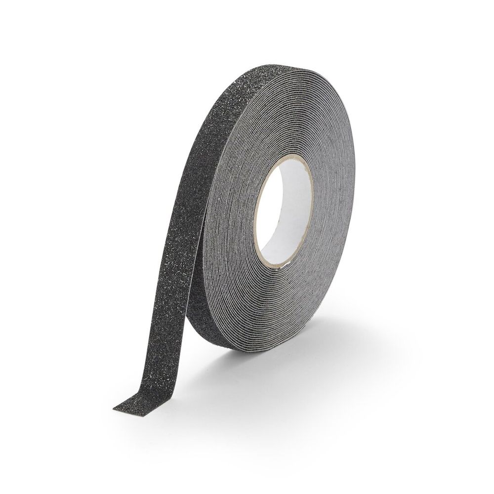 Čierna korundová protišmyková páska Extra Super - dĺžka 18,3 m, šírka 2,5 cm, hrúbka 1 mm Protišmyková páska Extra Super je vyrobená z veľmi hrubo granulovaného oxidu hlinitého so zrnitosťou, ktorá odoláva zanášaniu prachu, bahna aj snehu a vytvára tak aj na miestach s najvyššou záťažou. Na výrobu pásky sa používa vzácny typ hrubého granulátu, ktorý je usadený na špeciálnu odolnú plastovú fóliu. Fólia je z druhej strany potiahnutá vysoko lepivým lepidlom (HG), ktoré navrhnuté, aby priľnulo aj na tak problematické povrchy ako je napr. práškový lak. Páska je vďaka svojim abrazívnym vlastnostiam vhodnejšia pre oblasti vystavené stálemu pokrytiu nečistotami alebo vodou ako sú napr. priemyselné alebo stavebné prostredie. Hrubosť na povrchu pásky zabraňuje jej zaneseniu, čo jej umožňuje poskytovať zodpovedajúcu ochranu proti sklzu aj v najnáročnejších prostrediach. Najčastejšie použitie priemyselnej, stavebnej oblasti s vysokou záťažou prostredia s výskytom prachu, bahna, snehu i ľadu Vlastnosti samolepiaca a protišmyková vrstva vodeodolnosť (na neporéznom povrchu) odolnosť voči ľadu DIN 51130 - R13 Technický popis farba: čierna materiál lineru: silikonizovaný papier materiál: PVC , akryl, oxid hlinitý (povrch) lepidlo: HG dĺžka: 18,3 m šírka: 25 mm hrúbka: 1 mm koeficient trenia: 102 TRL (suchý povrch), 80 TRL (mokrý povrch) lepivosť: 17,9 (N / 25 mm; test 180° FINAT FTM1) pevnosť v ťahu: 76,4 (N / 25 mm; test Lloyd, 500 N) predĺženie po pretrhnutí: 25%? (test PSTC-31) odolnosť voči vode: 10 mesiacov (test PSTC-35) odolnosť voči chemikáliám: vynikajúca (test PSTC-35) odolnosť voči motorovým olejom: vynikajúca (test PSTC -35) odolnosť voči UV: dobrá (test Grey scale) min. teplota pre aplikáciu: 4° C prevádzková teplota: -30 až +70 °C odrazivosť svetla: 0 LRV (rozsah 0) Montáž / inštalácia Pred použitím zaistite, aby bola páska skladovaná vo svojom obale (ak v ňom bola dodaná), v suchu a min. teplote 10 ° C. Pred nalepením je potrebné zbaviť cieľový povrch všetkých nečistôt a mastnoty. Nepoužívajte metylalkohol, benzín, kvapalinu do zapaľovača ani iné kvapaliny, ktoré by za sebou mohli zanechať mastný film. Povrch na nanesenie pásky by mal mať aspoň 10 °C (pokiaľ nie je uvedené v technických parametroch inak). Pórovité povrchy je nutné pred aplikáciou utesniť, aby nedošlo k napadnutiu lepidla vodou. Základné nátery na báze toluénu sú ideálne. Na očistený povrch naneste štetcom tenkú vrstvu a potom nechajte zaschnúť. Pre aplikáciu pásky odlepte zadnú časť uvoľňovacej fólie, potom pevne pritlačte lepidlo na pripravený povrch a pomaly pokračujte v odlepovaní fólie. Snažte sa zaistiť, aby páska nebola napnutá. Po nanesení pásky pevne pritlačte rovnomerným tlakom (ideálne je použiť valček). Na predĺženie životnosti produktu odporúčame utesniť hrany pásky pomocou „fixovača hrán“. Na fixáciu naneste malé množstvo po okrajoch pásky. Pokiaľ je páska správne aplikovaná, je nový protišmykový povrch ihneď pochôdzny, aj keď po 48 hodinách získa lepiaci systém najlepšie vlastnosti.