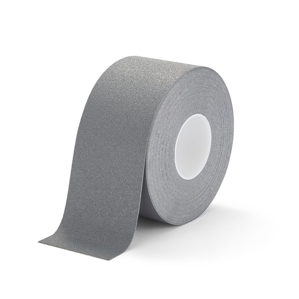 Šedá plastová vodeodolná protišmyková páska Super Resilient - dĺžka 18,3 m, šírka 10 cm, hrúbka 1,3 mm Hrubá pružná páska ideálna pre oblasti, ktoré vyžadujú nekĺzavý povrch pre bosú nohu a zároveň sú vystavené vode, ako sú napr. umyvárne, bazény alebo lode. Vzhľadom na to, že páska je vodotesná a neabrazívna, vyhovuje obom oblastiam. Páska je vyrobená z reliéfnej plastovej fólie, ktorá síce nie je abrazívna, ale napriek tomu má vysokú hladinu CoF (koeficient trenia). Použitím techniky razenia na neabrazívnom materiáli sa vytvorí povrchová štruktúra s vynikajúcou protišmykovosťou (hladinou CoF). Použitím techniky mikro vyfukovania do stále ešte rozžeraveného materiálu je možné vytvoriť ďalšie vzorovanie povrchu, ktoré navýši hladinu CoF. Hrubší vzor zabraňuje upchatiu pásky nečistotami, ako je prach, ľad, voda atď. Základný materiál pásky je upravený tak, aby získal povrch, ktorý je extrémne podobný kaučuku. Nielen že má skvelé protišmykové parametre, ale jeho vlastná mäkkosť mu dáva pridržiavacie vlastnosti. Aj keď vzorkovanie nie je tak ostré ako pri klasickej korundovej páske, materiálové vlastnosti protišmykovosť vykompenzujú. Najčastejšie použitie umyvárne, bazény, lode Vlastnosti samolepiaca a protišmyková vrstva vodeodolnosť šetrnosť voči bosej nohe a textíliám mäkký nášľap Technické údaje farba: sivá materiál lineru: silikonizovaný papier materiál: PET základňa, PVC povrch lepidlo: akrylové dĺžka: 18,3 m cm hrúbka: 1,3 mm koeficient trenia: 95 TRL (suchý povrch), 60 TRL (mokrý povrch) priľnavosť k oceli: 5,714 (kg / 25,4 mm) prevádzková teplota: -10 až +80 °C odrazivosť svetla: ? 5,75 LRV (rozsah 1 ) Montáž / inštalácia Pred použitím zaistite, aby bola páska skladovaná vo svojom obale (ak v ňom bola dodaná), v suchu a min. teplote 10 ° C. Pred nalepením je potrebné zbaviť cieľový povrch všetkých nečistôt a mastnoty. Nepoužívajte metylalkohol, benzín, kvapalinu do zapaľovača ani iné kvapaliny, ktoré by za sebou mohli zanechať mastný film. Povrch na nanesenie pásky by mal mať aspoň 10 °C (pokiaľ nie je uvedené v technických parametroch inak). Pórovité povrchy je nutné pred aplikáciou utesniť, aby nedošlo k napadnutiu lepidla vodou. Základné nátery na báze toluénu sú ideálne. Na očistený povrch naneste štetcom tenkú vrstvu a potom nechajte zaschnúť. Pre aplikáciu pásky odlepte zadnú časť uvoľňovacej fólie, potom pevne pritlačte lepidlo na pripravený povrch a pomaly pokračujte v odlepovaní fólie. Snažte sa zaistiť, aby páska nebola napnutá. Po nanesení pásky pevne pritlačte rovnomerným tlakom (ideálne je použiť valček). Na predĺženie životnosti produktu odporúčame utesniť hrany pásky pomocou „fixovača hrán“. Na fixáciu naneste malé množstvo po okrajoch pásky. Pokiaľ je páska správne aplikovaná, je nový protišmykový povrch ihneď pochôdzny, aj keď po 48 hodinách získa lepiaci systém najlepšie vlastnosti.
