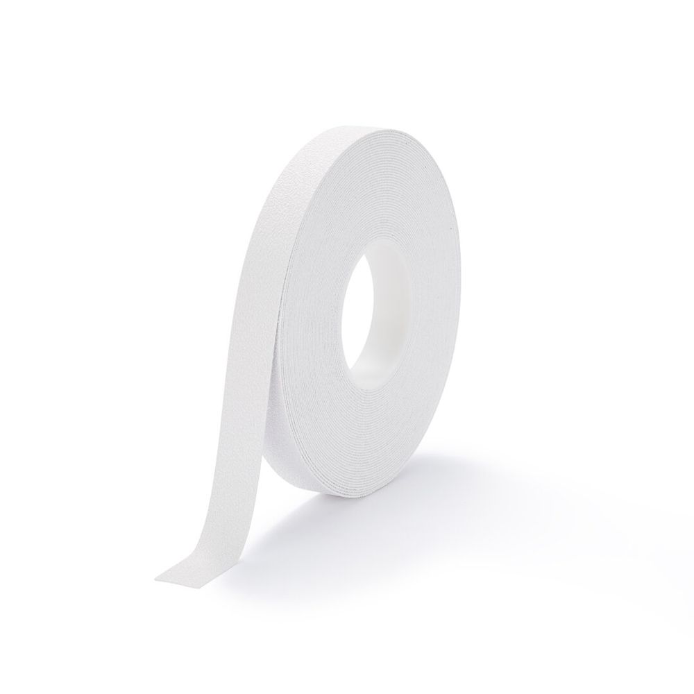 Biela plastová vodeodolná protišmyková páska Super Resilient - dĺžka 18,3 m, šírka 2,5 cm, hrúbka 1,3 mm Hrubá pružná páska ideálna pre oblasti, ktoré vyžadujú nekĺzavý povrch pre bosú nohu a zároveň sú vystavené vode, ako sú napr. umyvárne, bazény alebo lode. Vzhľadom na to, že páska je vodotesná a neabrazívna, vyhovuje obom oblastiam. Páska je vyrobená z reliéfnej plastovej fólie, ktorá síce nie je abrazívna, ale napriek tomu má vysokú hladinu CoF (koeficient trenia). Použitím techniky razenia na neabrazívnom materiáli sa vytvorí povrchová štruktúra s vynikajúcou protišmykovosťou (hladinou CoF). Použitím techniky mikro vyfukovania do stále ešte rozžeraveného materiálu je možné vytvoriť ďalšie vzorovanie povrchu, ktoré navýši hladinu CoF. Hrubší vzor zabraňuje upchatiu pásky nečistotami, ako je prach, ľad, voda atď. Základný materiál pásky je upravený tak, aby získal povrch, ktorý je extrémne podobný kaučuku. Nielen že má skvelé protišmykové parametre, ale jeho vlastná mäkkosť mu dáva pridržiavacie vlastnosti. Aj keď vzorkovanie nie je tak ostré ako pri klasickej korundovej páske, materiálové vlastnosti protišmykovosť vykompenzujú. Najčastejšie použitie umyvárne, bazény, lode Vlastnosti samolepiaca a protišmyková vrstva vodeodolnosť šetrnosť voči bosej nohe a textíliám mäkký nášľap Technické údaje farba: biela materiál lineru: silikonizovaný papier materiál: PET základňa, PVC povrch lepidlo: akrylové dĺžka: 18,3 mm hrúbka: 1,3 mm koeficient trenia: 95 TRL (suchý povrch), 60 TRL (mokrý povrch) priľnavosť k oceli: 5,714 (kg / 25,4 mm) prevádzková teplota: -10 až +80 °C odrazivosť svetla: ? 78,5 LRV (rozsah 1 ) Montáž / inštalácia Pred použitím zaistite, aby bola páska skladovaná vo svojom obale (ak v ňom bola dodaná), v suchu a min. teplote 10 ° C. Pred nalepením je potrebné zbaviť cieľový povrch všetkých nečistôt a mastnoty. Nepoužívajte metylalkohol, benzín, kvapalinu do zapaľovača ani iné kvapaliny, ktoré by za sebou mohli zanechať mastný film. Povrch na nanesenie pásky by mal mať aspoň 10 °C (pokiaľ nie je uvedené v technických parametroch inak). Pórovité povrchy je nutné pred aplikáciou utesniť, aby nedošlo k napadnutiu lepidla vodou. Základné nátery na báze toluénu sú ideálne. Na očistený povrch naneste štetcom tenkú vrstvu a potom nechajte zaschnúť. Pre aplikáciu pásky odlepte zadnú časť uvoľňovacej fólie, potom pevne pritlačte lepidlo na pripravený povrch a pomaly pokračujte v odlepovaní fólie. Snažte sa zaistiť, aby páska nebola napnutá. Po nanesení pásky pevne pritlačte rovnomerným tlakom (ideálne je použiť valček). Na predĺženie životnosti produktu odporúčame utesniť hrany pásky pomocou „fixovača hrán“. Na fixáciu naneste malé množstvo po okrajoch pásky. Pokiaľ je páska správne aplikovaná, je nový protišmykový povrch ihneď pochôdzny, aj keď po 48 hodinách získa lepiaci systém najlepšie vlastnosti.