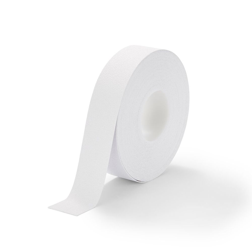 Biela plastová vodeodolná protišmyková páska Super Resilient - dĺžka 18,3 m, šírka 5 cm, hrúbka 1,3 mm Hrubá pružná páska ideálna pre oblasti, ktoré vyžadujú nekĺzavý povrch pre bosú nohu a zároveň sú vystavené vode, ako sú napr. umyvárne, bazény alebo lode. Vzhľadom na to, že páska je vodotesná a neabrazívna, vyhovuje obom oblastiam. Páska je vyrobená z reliéfnej plastovej fólie, ktorá síce nie je abrazívna, ale napriek tomu má vysokú hladinu CoF (koeficient trenia). Použitím techniky razenia na neabrazívnom materiáli sa vytvorí povrchová štruktúra s vynikajúcou protišmykovosťou (hladinou CoF). Použitím techniky mikro vyfukovania do stále ešte rozžeraveného materiálu je možné vytvoriť ďalšie vzorovanie povrchu, ktoré navýši hladinu CoF. Hrubší vzor zabraňuje upchatiu pásky nečistotami, ako je prach, ľad, voda atď. Základný materiál pásky je upravený tak, aby získal povrch, ktorý je extrémne podobný kaučuku. Nielen že má skvelé protišmykové parametre, ale jeho vlastná mäkkosť mu dáva pridržiavacie vlastnosti. Aj keď vzorkovanie nie je tak ostré ako pri klasickej korundovej páske, materiálové vlastnosti protišmykovosť vykompenzujú. Najčastejšie použitie umyvárne, bazény, lode Vlastnosti samolepiaca a protišmyková vrstva vodeodolnosť šetrnosť voči bosej nohe a textíliám mäkký nášľap Technické údaje farba: biela materiál lineru: silikonizovaný papier materiál: PET základňa, PVC povrch lepidlo: akrylové dĺžka: 18,3 mm hrúbka: 1,3 mm koeficient trenia: 95 TRL (suchý povrch), 60 TRL (mokrý povrch) priľnavosť k oceli: 5,714 (kg / 25,4 mm) prevádzková teplota: -10 až +80 °C odrazivosť svetla: ? 78,5 LRV (rozsah 1 ) Montáž / inštalácia Pred použitím zaistite, aby bola páska skladovaná vo svojom obale (ak v ňom bola dodaná), v suchu a min. teplote 10 ° C. Pred nalepením je potrebné zbaviť cieľový povrch všetkých nečistôt a mastnoty. Nepoužívajte metylalkohol, benzín, kvapalinu do zapaľovača ani iné kvapaliny, ktoré by za sebou mohli zanechať mastný film. Povrch na nanesenie pásky by mal mať aspoň 10 °C (pokiaľ nie je uvedené v technických parametroch inak). Pórovité povrchy je nutné pred aplikáciou utesniť, aby nedošlo k napadnutiu lepidla vodou. Základné nátery na báze toluénu sú ideálne. Na očistený povrch naneste štetcom tenkú vrstvu a potom nechajte zaschnúť. Pre aplikáciu pásky odlepte zadnú časť uvoľňovacej fólie, potom pevne pritlačte lepidlo na pripravený povrch a pomaly pokračujte v odlepovaní fólie. Snažte sa zaistiť, aby páska nebola napnutá. Po nanesení pásky pevne pritlačte rovnomerným tlakom (ideálne je použiť valček). Na predĺženie životnosti produktu odporúčame utesniť hrany pásky pomocou „fixovača hrán“. Na fixáciu naneste malé množstvo po okrajoch pásky. Pokiaľ je páska správne aplikovaná, je nový protišmykový povrch ihneď pochôdzny, aj keď po 48 hodinách získa lepiaci systém najlepšie vlastnosti.