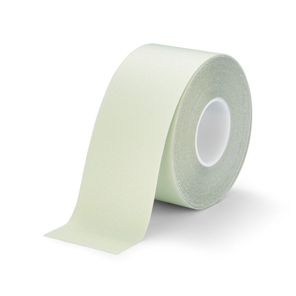 Fotoluminiscenčná protišmyková páska Extra Super Glow in the Dark - dĺžka 15 m, šírka 10 cm, hrúbka 1,5 mm Veľmi kvalitná fotoluminiscenčná páska vyrobená pomocou špeciálnej technológie, ktorá umožňuje predĺžiť svietivosť aj jas materiálu a zaručiť tak vyššiu bezpečnosť v priestoroch so zníženou viditeľnosťou. Páska je vhodná pre mnoho aplikácií, najmä pre interiérové oblasti ako sú napríklad chodby a schodiská (iz vyšších poschodí), ktoré sa využívajú ako únikové cesty v prípade výpadku elektrického prúdu. Po približne 1,5 hodinovom nabíjaní bude mať páska dosvit medzi 8 až 10 hodinami. Neabrazívny protišmykový povrch pásky umožňuje taktiež aplikáciu v oblastiach vystavených bosým nohám alebo vode. Vďaka povrchovej štruktúre pásky, ktorá nezadržuje baktérie a je veľmi jednoducho očistiteľná, je možné pásku použiť aj v oblastiach, ktoré vyžadujú prísne hygienické normy. Materiál je dodávaný v najvyššom štandarde a ďaleko presahuje súčasné požadované predpisy, čo zaisťuje aj jeho budúcu funkčnosť. Úroveň jasu, ktorú páska vyžaruje, prekračuje regulačné požiadavky. Páska zodpovedá všetkým normám DIN, ASTM a OSHA. Dôležitá regulácia OSH1910 opierajúci sa o technické informácie z ASTM 2072, ktorá stanovuje minimálnu úroveň jasu na 30 mcd / m2 (milicandel na meter štvorcový) a 4,4 mcd / m2 po dobu 60 minút, je splnená. Vysoko kvalitná protišmyková páska tiež prekračuje štandardy DIN 67510 spĺňajúce triedu C, žiariace až po dobu 1 800 minút. Páska je teda vhodná aj pre výškovú budovu, ktorá je osvetlená bez ďalšej elektriny, čo je nákladovo veľmi efektívna metóda riešenia. Nižšie uvedené hodnoty koeficientu trenia sa vykonávajú pomocou jazdca TRL (Transport Road Laboratories). Najčastejšie použitie únikové východy (z výškových budov) Vlastnosti protišmyková vrstva samolepiaca vrstva fotoluminiscencia šetrnosť k bosému chodidlu Technické údaje farba: biela, v tme fotoluminiscenčná zelená farba žiara: svetlo zelená lepidlo: akrylové dĺžka: 15 m šírka: mm koeficient trenie: 95 TRL (suchý povrch), 47 TRL (mokrý povrch) prevádzková teplota: -30 až +90 ° C svietivosť: 229 / 10 min., 40 / 60 min. (mcd / m?) dĺžka svietivosti: 8 - 10 hodín odrážavosť svetla: ? 48,50 LRV (rozsah 4) Montáž / inštalácia Pred použitím zaistite, aby bola páska skladovaná vo svojom obale (ak v ňom bola dodaná), v suchu a min . teplote 10 ° C. Pred nalepením je potrebné zbaviť cieľový povrch všetkých nečistôt a mastnoty. Nepoužívajte metylalkohol, benzín, kvapalinu do zapaľovača ani iné kvapaliny, ktoré by za sebou mohli zanechať mastný film. Povrch na nanesenie pásky by mal mať aspoň 10 °C (pokiaľ nie je uvedené v technických parametroch inak). Pórovité povrchy je nutné pred aplikáciou utesniť, aby nedošlo k napadnutiu lepidla vodou. Základné nátery na báze toluénu sú ideálne. Na očistený povrch naneste štetcom tenkú vrstvu a potom nechajte zaschnúť. Pre aplikáciu pásky odlepte zadnú časť uvoľňovacej fólie, potom pevne pritlačte lepidlo na pripravený povrch a pomaly pokračujte v odlepovaní fólie. Snažte sa zaistiť, aby páska nebola napnutá. Po nanesení pásky pevne pritlačte rovnomerným tlakom (ideálne je použiť valček). Na predĺženie životnosti produktu odporúčame utesniť hrany pásky pomocou „fixovača hrán“. Na fixáciu naneste malé množstvo po okrajoch pásky. Pokiaľ je páska správne aplikovaná, je nový protišmykový povrch ihneď pochôdzny, aj keď po 48 hodinách získa lepiaci systém najlepšie vlastnosti.