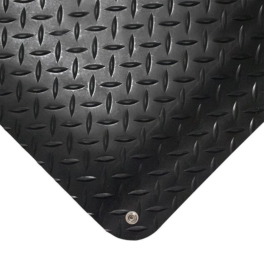 Čierna gumová protiúnavová protišmyková antistatická dvojvrstvová rohož - dĺžka 18,3 m, šírka 120 cm, výška 1,4 cm Odolná protiúnavová protišmyková antistatická rohož pre citlivé oblasti, kde hrozí riziko elektrostatického výboja. Táto rohož má dvojitú vrstvu, ktorá zaisťuje efektívnu ochranu proti elektrostatickému náboju a zároveň znižuje únavu nôh a chrbta u užívateľa. Podložka obsahuje vodivú vrstvu, ktorá neutralizuje statický náboj a chráni tak komponenty pred poškodením. Horný povrch poskytuje odolnosť voči mnohým priemyselným chemikáliám. Komfortný diamantový povrch podporuje jemné pohyby, ktoré ďalej znižujú únavu. Uzemnenie pomocou 10 mm kolíka namontovaného na podložke. Štandardne sa dodáva so skosenými hranami na zníženie rizika zakopnutia. Testované podľa požiadaviek na odolnosť EN14041. Najčastejšie použitie výroba elektronických súčiastok, potravinársky alebo farmaceutický priemysel Vlastnosti antistatická: vodivá vrstva podložky neutralizuje statický náboj, čo znižuje riziko poškodenia citlivých elektronických komponentov vrchný povrch z PVC poskytuje odolnosť voči chemikáliám a olejom diamantový povrch minimalizuje riziko pošmyknutia a zlepšuje bezpečnosť minim Technický popis materiál: vinylový povrch s PVC penovou podložkou vzor: diamant farba: čierna dĺžka: 18,3 m šírka: 120 cm výška: 1,4 cm hmotnosť: 166 kg prevádzková teplota: 0 ° C až + 60 ° C odpor: Rv 9.8 x 10? ? vhodné prostredie: suché