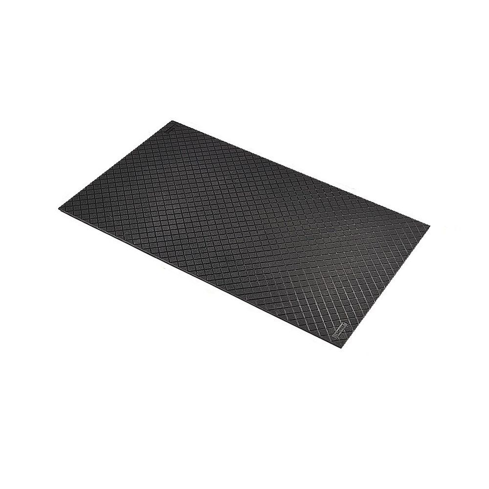 Čierna extra odolná olejovzdorná modulová rohož Safety Stance Solid - dĺžka 150 cm, šírka 90 cm, výška 2 cm Čierna extra odolná priemyselná olejovzdorná rohož Safety Stance Solid je vyrobená zo 100% nitrilovej zmesi odolnej priemyselným olejom a chemikáliám. Vhodná do viacsmenných prevádzok. Protiúnavové rohože najvyššej kvality určené do priemyselného prostredia s vysokou záťažou. Povrch Diamond Grid garantuje bezpečnú chôdzu, kanáliky zachytávajú úniky oleja. Plné prevedenie chráni podlahu pred znečistením a bráni prepadaniu drobných predmetov. Ergonomický prínos zo státia na 20 mm pružnej podložke. Neposúva sa. Neobsahuje silikón, je preto vhodná aj do lakovní. Rohož je dodávaná bez nábehovej hrany. V prípade záujmu je možné okraje rohože doplniť o nábehovú hranu, ktorú ponúkame v niekoľkých farebných prevedeniach a nájdete ich v súvisiacom tovare. Na spojenie jednotlivých rohoží do väčšej plochy je možné použiť spojku, ktorú tiež nájdete v súvisiacom tovare. Vlastnosti rohože Safety Stance Solid protiúnavová rohož pre vysokú záťaž gumová rohož pre suché priemyselné prostredie vhodná do viacsmenných prevádzok odolná voči priemyselným olejom a chemikáliám neobsahuje DOP, DMF, látky poškodzujúce ozónovú vrstvu neobsahuje silikón ani ťažké kovy protiGl3 BGR181 statický koeficient trenia: 0,65 (ASTM C1028-96) odolnosť v odere (strata hmotnosti) 1000 cyklov: 3,1% (ASTM D3884-01) tvrdosť: 33 Shore A (ASTM D2240-02) dĺžkové predĺženie pri pre 258,2% (ASTM D412) nehorľavosť: ÁNO (ASTM D2859) Technický popis materiál: 100% nitrilová guma dĺžka: 1,5 m šírka: 90 cm výška: 2 cm hmotnosť: 20,3 kg hmotnosť: 15 kg/m? farba: čierna