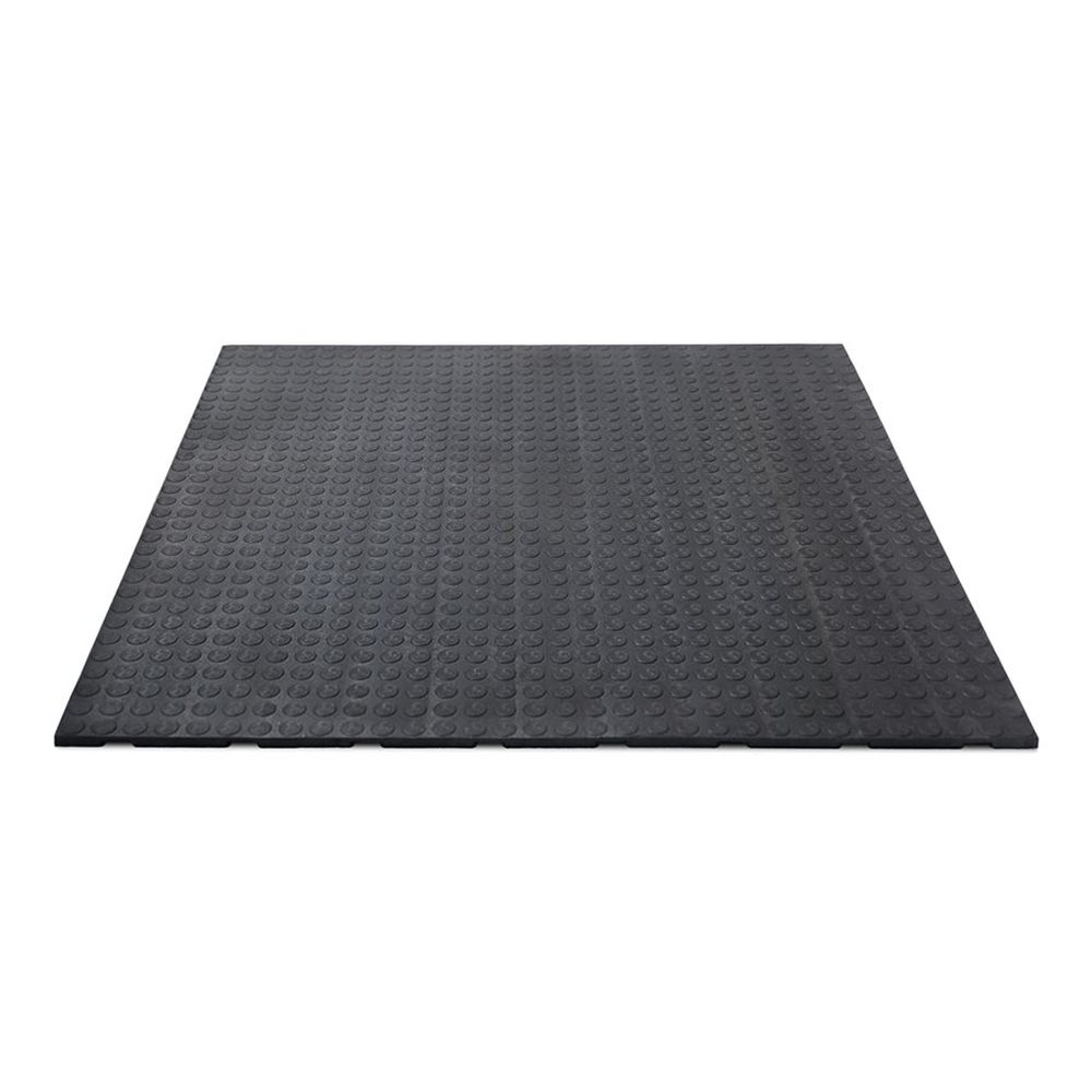 Gumová EPDM priemyselná protišmyková podlahová modulová doska Coins (peniazky) - dĺžka 110 cm, šírka 110 cm, výška 1,5 cm Podlahová doska s krytým spojovacím zámkom je vyrobená z materiálu EPDM o tvrdosti 60 ° Sha, pevnosť gumy 8MPa. Dosky sú určené na vonkajšie aj vnútorné použitie. Majú vysokú UV odolnosť a farebnú stálosť. Najčastejšie použitie podlaha pre zimné štadióny stajne, posilňovne vonkajšie plochy, pochôdzne chodníky garáže priemyselné priestory Vlastnosti s dezénom peniažky protišmykovosť vďaka zvolenému dezénu tlmenie nárazov padajúcich predmetov vonkajšie aj vnútorné použitie Technické údaje materiál: EPDM dezén: peniažky (coins) šírka 1,5 cm dĺžka: 110 cm farba: čierna pevnosť: 8 MPa tvrdosť: 60 ° ShA Údržba nenáročná na údržbu veľmi ľahko čistí umytie kefou alebo mopom