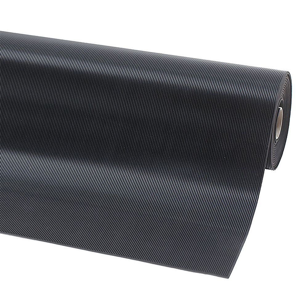 Čierna olejovzdorná rohož (rola) Rib 'n' Roll RS - dĺžka 10 m, šírka 100 cm, výška 0,3 cm Rohože Rib 'n' Roll sú rohože s výbornými pevnostnými parametrami. Používajú sa na pokrytie podláh, políc, vozíkov alebo ložného priestoru dodávok a na mnohých ďalších miestach, kde by odložený predmet mohol skĺznuť, spadnúť alebo do niečoho naraziť. Sú odolné nízkym koncentráciám kyselín a lúhov. Vlastnosti a použitie rohož s výbornými pevnostnými parametrami odolné nízkym koncentráciám kyselín a lúhov gumová zmes NBR/SBR odolná olejom a tukom neobsahuje DOP, DMF, látky poškodzujúce ozónovú vrstvu neobsahuje silikón ani ťažké kovy tvrdosť: 60 Shore A (ASTM ťahu (DIN53504): 3,5 Mpa medzné predĺženie (DIN53504): 250% merný oter (ISO4649, DIN53516): 300-500 mm? statický koeficient trenia: 0,73 (ASTM C1028-96) odolnosť voči : 0,2% (ASTM D3884-01) prevádzková teplota: od -10°C do +70°C Technické údaje farba: čierna materiál: NBR/SBR gumová zmes, odolná tukom dezén: jemné ryhovanie dĺžka: 10 m šírka: 100 cm výška: 0,3 cm hmotnosť: 33 kg hmotnosť: 3,3 kg/m?
