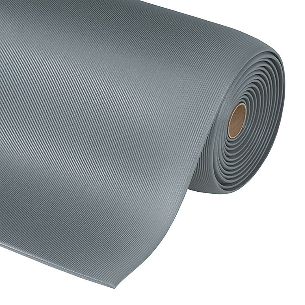 Šedá protiúnavová rohož (rola) Gripper Sof-Tred - dĺžka 18,3 m, šírka 122 cm, výška 1,27 cm Priemyselné protiúnavové rohože Sof-Tred sú určené do výrobných priestorov a hál. Vďaka vynikajúcim protiúnavovým vlastnostiam zmierňujú únavu pri dlhodobom státí. chráni pracovníkov pred negatívnymi vplyvmi studených betónových podláh. výnimočný užívateľský komfort vďačí 12,7 mm hrubej, špeciálnej zmesi. Ochranná vrstva Dyna-Shield predlžuje životnosť o 50% v porovnaní s bežnou rohožou z mikrobunkového vinylu. suché prostredie povrch s pozdĺžnymi drážkami pre bezpečnú chôdzu neobsahuje DOP, DMF, látky poškodzujúce ozónovú vrstvu neobsahuje silikón ani ťažké kovy všetky štyri strany opatrené nábehovou hranou protišmykovosť R10 podľa noriem DIN51130 a BG-rule BGR181 statický koeficient trenia: 1,00 (ASTM C1028-96 D2240-02) odolnosť voči oderu (strata hmotnosti) 1000 cyklov: 4,9 % (ASTM D3884-01) požiarna odolnosť Trieda 2 podľa normy NFPA Safety Code 101 Technické údaje farba: šedá dezén: pozdĺžne drážky dĺžka: 18,3 m : 122 cm výška: 1,27 cm hmotnosť: 86 kg hmotnosť: 4 kg/m?