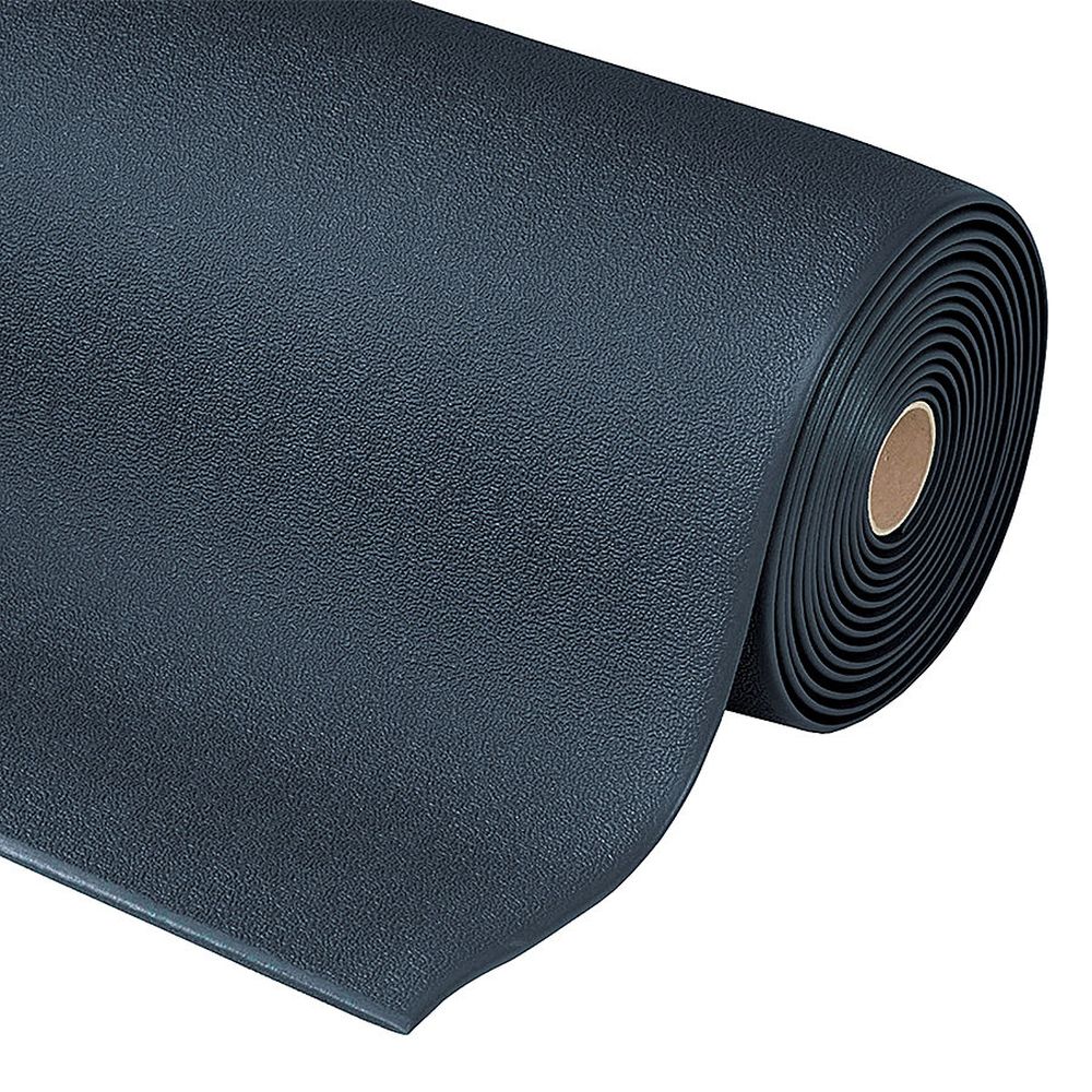 Čierna protiúnavová rohož (rola) Sof-Tred - dĺžka 18,3 m, šírka 91 cm, výška 0,94 cm Priemyselné protiúnavové rohože Sof-Tred sú určené do výrobných priestorov a hál. Ergonomická rohož poskytujúca základný pracovný komfort je vyrobená z mikrobunkového vinylu, zadržujúceho v uzavretých bunkách milióny vzduchových bubliniek. Všetky štyri strany sú uzavreté a zošiknuté proti zakopnutiu. Vlastnosti a použitia určené pre nízku záťaž a suché prostredie povrch “pomarančová kôra” umožňuje pohyb všetkými smermi a ľahko sa čistí neobsahuje DOP, DMF, látky poškodzujúce ozónovú vrstvu neobsahuje silikón ani ťažké kovy všetky štyri strany opatrené nábehovou hranou protišmykovosť R11 podľa noriem DIN -rule BGR181 statický koeficient trenia: 0,79 (ASTM C1028-96) odolnosť voči oderu (strata hmotnosti) 5000 cyklov: 18,1 % (ASTM D3884-01) požiarna odolnosť Trieda 2 podľa normy NFPA Safety Code 101 Technické údaje farba: čierna materiál: mikrobune vinyl dezén: hladký - pomarančová kôra dĺžka: 18,3 m šírka: 91 cm výška: 0,94 cm hmotnosť: 37 kg hmotnosť: 2,3 kg/m?