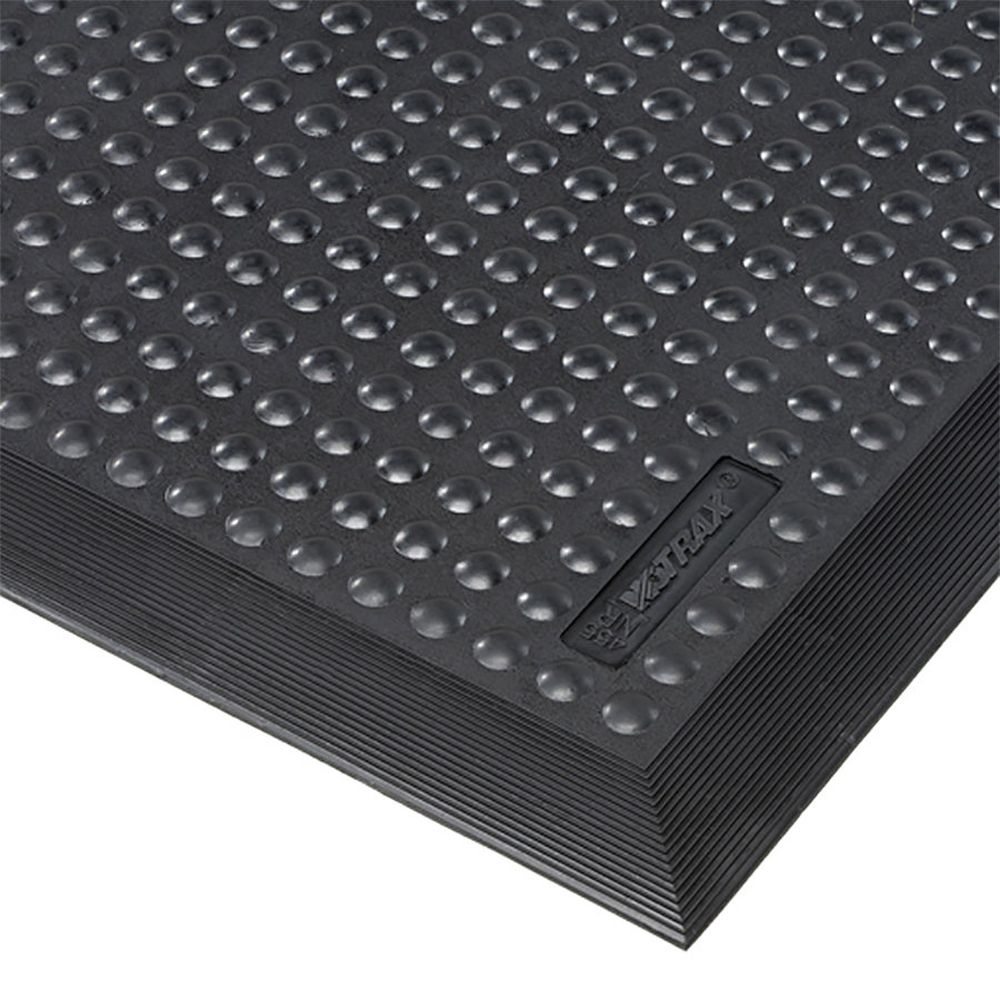 Čierna gumová protiúnavová rohož Skystep Nitrile - dĺžka 60 cm, šírka 90 cm, výška 1,3 cm Gumová protiúnavová priemyselná rohož Skystep využíva silu vzduchu. Vzduchové vrecká na rube rohože slúžia ako prísavky brániace posúvaniu rohože. Zachytený vzduch zároveň poskytuje konštrukciu rohože oporu. Tá preto môže byť menej robustná, ľahšia a napriek tomu poskytovať vysoký komfort vďaka pružnosti gumy. Tieto 13 mm hrubé, samostatné gumové rohože majú ergonomický bublinový povrch s výbornými protiúnavovými parametrami, umožňujúcimi voľný pohyb všetkými smermi. Rohože Skystep majú na všetkých štyroch stranách vylisovanú nábehovú hranu, minimalizujúcu riziko zakopnutia. Sú vyrábané z gumových zmesí najvyššej kvality. Nevyžadujú odbornú inštaláciu. Varianty rohože Skystep Skystep 100% prírodná gumová zmes všeobecné použitie Skystep Nitrile 100% nitrilová gumová zmes odolná väčšine priemyselných olejov Skystep ESD antistatická zmes na báze prírodnej gumy vyhovuje norme IEC61340-4-1 (kategória DIF), kategória DIF Rp 106-109 ? ESD test: RG 1,7 x 107 ? (ANSI ESD S7.1) Skystep Red 75% nitrilová gumová zmes odolná voči olejom a tukom vhodná pre gastronómiu a potravinársky priemysel Vlastnosti rohože Skystep Nitrile protiúnavová rohož pre strednú záťaž pre suché prostredie odolná väčšine priemyselných olejov obvodová hrana pre vyššiu bezpečnosť neobsahuje DOP, DMF, látky poškodzujúce ozónovú vrstvu neobsahuje silikón ani ťažké kovy protišmykovosť: R9, podľa normy DIN 51130 a BG-rule BGR181 odolnosť v odere (strata hmotnosti) 1000 cyklov: 0 01) tvrdosť: 68 Shore A, podľa normy DIN 53505 dĺžkové predĺženie pri pretrhnutí: 210%, podľa normy ASTM D2240-02 nehorľavosť: 5 minút, podľa normy ASTM D2859 Technický popis varianta: Skystep Nitrile dĺžka: 60 cm šírka: 9 cm hmotnosť: 5,5 kg hmotnosť: 10 kg/m? farba: čierna