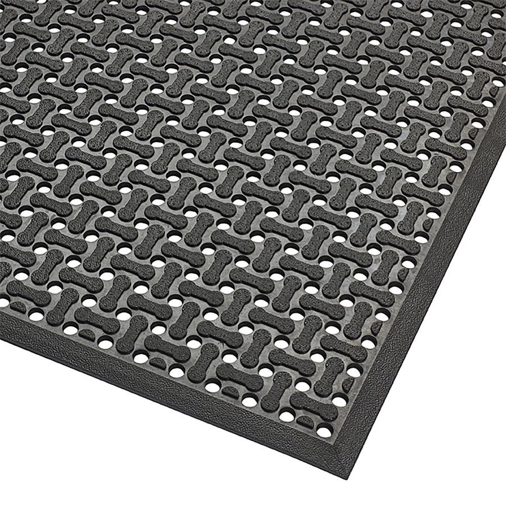 Čierna gumová obojstranná protišmyková rohož Superflow XT - dĺžka 91 cm, šírka 152 cm, výška 0,85 cm Čierna gumová obojstranná protišmyková rohož Superflow XT s drenážnym systémom, ktorý umožňuje okamžitý odtok kvapalín. Rohož je veľmi nízkeho profilu pre lepší prístup a ľahký prejazd vozíka. Zo všetkých strán je lemovaná nájazdovou hranou. Rohož je vyrobená z kvalitnej gumovej zmesi pre dlhú životnosť. Rohož je určená do mokrého prostredia. Drenážne otvory umožňujú odvetrávanie, pretekanie tekutín a prepadávanie nečistôt, povrch tak zostáva suchý a čistý. Pravidelné čistenie saponátom a tlakovou vodou predlžuje ich životnosť. Tvrdá gumová zmes garantuje dlhú životnosť rohoží. Vlastnosti a použitie obojstranná protišmyková rohož dierovaná rohož pre mokré prostredie vhodná na prejazd vozíkov neobsahuje DOP, DMF, látky poškodzujúce ozónovú vrstvu neobsahuje silikón ani ťažké kovy Technický popis materiál: 100% prírodná gumová zmes dĺžka: 91 cm šírka: 152 cm 85 cm hmotnosť: 15,6 kg hmotnosť: 8,8 kg/m? farba: čierna