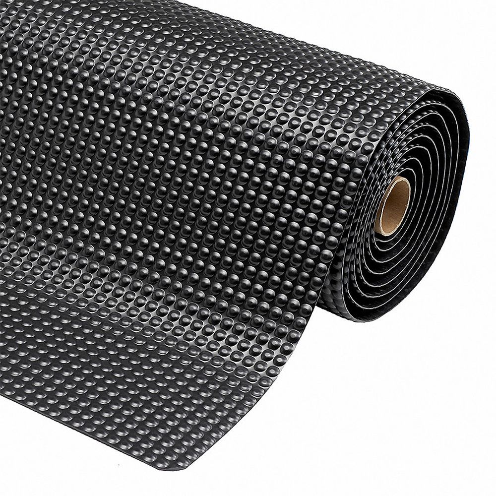 Čierna protiúnavová laminovaná rohož Sky Trax - dĺžka 200 cm, šírka 91 cm, výška 1,9 cm Priemyselná protiúnavová laminovaná rohož Sky Trax zaisťuje vysoký komfort pracovníkov pri dlhom státí na pracovisku, zmierňuje únavu pri dlhodobom státí a chráni pracovníkov pred negatívnymi vplyvmi studených. Vďaka laminovanému PVC povrchu má oveľa dlhšiu životnosť ako bežné vinylové protiúnavové rohože. Kombinuje povrch vysoko odolný proti oteru s pružným podkladom z mikrobunkového vinylu, znižujúcim únavu pracovníkov. Po obvode je vybavená nábehovou hranou na prevenciu zakopnutia. Rubová strana je vybavená membránou RedStop brániacou posúvaniu rohože. Protiúnavové rohože sú nalaminované oteruvzdorným povrchom na mikrobunkový vinylový podklad a sú vyrábané pre maximálnu životnosť a vysoký pracovný komfort. Povrchová úprava spoločne s dezénom "bublinky" zabezpečuje dobrú oporu podrážkam a zároveň dovoľuje ľahké otáčanie pracovníkov a protišmykovú ochranu. Najčastejšie použitie automobilový priemysel výrobnej linky montážnej plochy Vlastnosti určené pre vysokú záťaž a suché priemyselné prostredie odolné voči väčšine priemyselných tekutín a chemikálií neobsahuje DOP, DMF, látky poškodzujúce ozónovú vrstvu neobsahuje silikón ani ťažké kovy všetky štyri strany opatrené nábehovou hranou podklad povrch o hrúbke 5 mm koeficient trenia: 0,82 (ASTM C1028-96) tvrdosť: 95 Shore A (ASTM D2240-02) trieda protišmykovosti R9 (DIN 51 130, BGR 181) odolnosť voči oderu (strata hmotnosti) 500 cyklov: 0,1 % D3884-01) požiarna odolnosť Cfl-S2 podľa normy ISO 13501 Technické údaje podklad: mikrobunkový vinyl s výškou 1,4 cm povrch: laminovaný PVC povrch s výškou 0,5 cm dĺžka: 200 cm šírka: 91 cm výška: 1,9 cm farba: čierna dezén: bublinky hmotnosť: 14 kg hmotnosť: 6,3 kg/m?