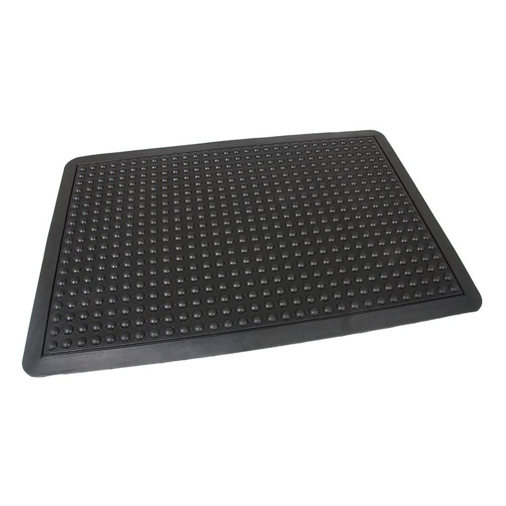 Gumová protiúnavová rohož Bubble - dĺžka 60 cm, šírka 90 cm, výška 1,5 cm Pracovná protiúnavová rohož je vhodná pre prevádzky vyžadujúce dlhodobejšie státie pracovníkov, ako sú výrobné priestory, montážne linky, baliace pracoviská a podobne. Najčastejšie použitie výrobné priestory, montážne linky, baliace pracovisko Vlastnosti vyrobená z mäkkej prírodnej gumy / gumy rohož nie je vhodná pre pracovisko, kde dochádza k styku s olejmi ponúka úľavu a pohodlie pri dlhšom státí na mieste príjemný bublinkový povrch na státie - znižuje únavu, stimuluje cirkuláciu krvi v nohách rohožka izoluje pracovníkov od studenej betónovej podlahy obvod rohože tvorí nábehová hrana, ktorá bráni zakopnutiu a umožňuje prejazd vozíkov Technický popis materiál: guma (guma) dĺžka: 60 cm šírka: 90 cm výška: 1,5 cm hmotnosť: 3,8 kg