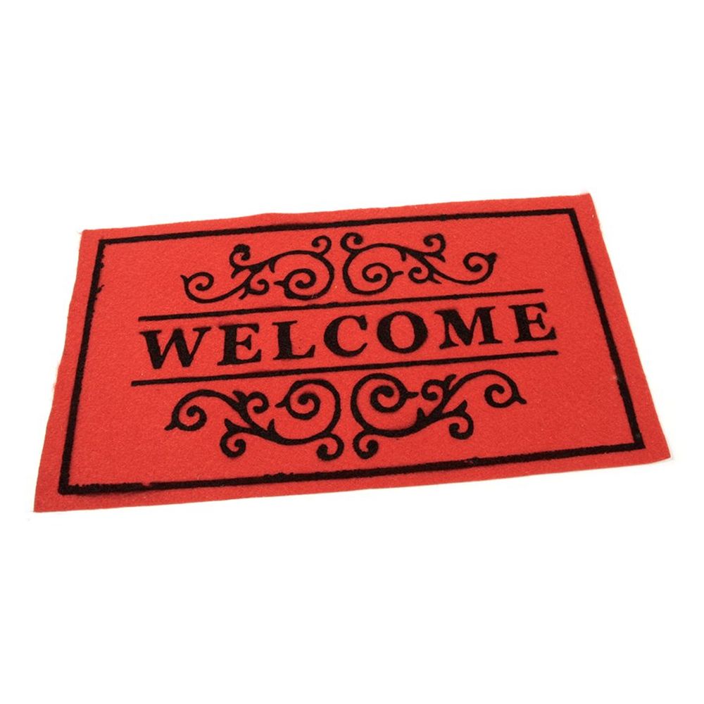 Červená textilná vstupná rohož Welcome - Deco - dĺžka 33 cm, šírka 58 cm, výška 0,3 cm Textilná vstupná vnútorná čistiaca rohož s motívom WELCOME je určená do menej zaťažených priestorov, pred dvere do domu, bytu či kancelárie. Ide o najlacnejší variant vstupnej rohože pre bežné použitie. Najčastejšie použitie priestory s menším prevádzkovým zaťažením vchod do domu, bytu, kancelárie pre vnútorné použitie Vlastnosti textilná rohož na bežné použitie základný model textilnej rohože Technické údaje dĺžka: 33 cm šírka: 58 cm výška: 0,3 cm váha: 0,15 kg farba : červená