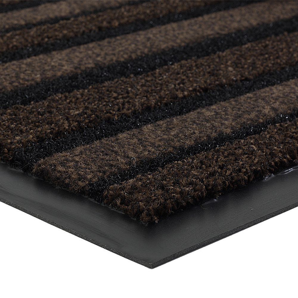 Hnedá vstupná rohož Passage (Cfl-S1) - dĺžka 90 cm, šírka 135 cm, výška 0,9 cm Textilná čistiaca vnútorná vstupná rohož Passage je vhodná na dočistenie obuvi od jemných nečistôt a vody. Horná vrstva rohože je vyrobená zo 100% polyamidu, rubová strana rohože je z vinylu s gumovou nábehovou hranou. Textilná rohož Passage je vyrobená v zaujímavom pruhovanom dizajne. Vstupná čistiaca rohož Passage sa čistí bežnými čistiacimi prostriedkami. Najčastejšie použitie textilná rohož pre vnútorné priestory vstupy do budov a kancelárskych priestorov menšie obchody, penzióny a hotely reštaurácie, kaviarne, bistra, bary obchody, showroomy, banky Vlastnosti horná vrstva zo 100% polyamidu vinylový podklad s gumovou nábehovou hranou protipožiarnej certifikácie podľa normy EN 13501 -1, klasifikácia Cfl-S1 Technické údaje materiál: 100% polyamid podklad: vinyl farba: Brown - hnedá výška: 9 mm dĺžka: 90 cm šírka: 135 cm hmotnosť: 4,51 kg hmotnosť: 3900 g/m?