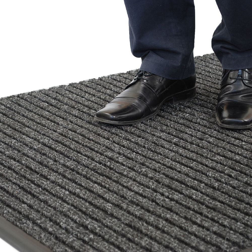 Antracitová textilná vstupná rohož Koral - dĺžka 110 cm, šírka 210 cm, výška 1,4 cm Vstupná rohož s rebrovanými a odolnými vláknami, vďaka ktorým dokonale zadrží blato, piesok a sneh pri vchode. Je odolný voči nízkym teplotám a vlhkosti. Najčastejšie použitie vnútorné vstupy administratívnej budovy reštaurácie kluby Vlastnosti odolný povrch spodná strana vyrobená z pružnej gumy nájazdovej hrany Technické údaje farba: antracitový materiál: textilný, guma dĺžka: 110 cm šírka: 210 cm výška: 1.4 cm hmotnosť: 2 kg vysoká savosť: až 6l / m2