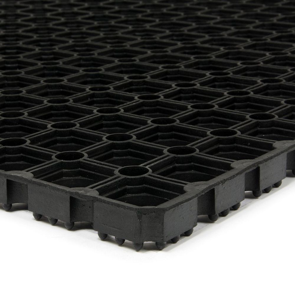 Gumová vonkajšia vstupná rohož Honeycomb - dĺžka 40 cm, šírka 60 cm, výška 2,2 cm Vonkajšia gumová vstupná rohož Honeycomb je vhodná na odstránenie hrubých nečistôt ako je sneh a bahno. Túto rohožku najčastejšie vidíte ako vstupnú čistiacu rohož pri vstupoch do budov. Možno použiť aj ako zatrávňovaciu rohož na zatrávnenie namáhaných plôch. Gumová rohož Honeycomb nie je vhodná na prejazd nákupného vozíka, na tento účel sú vhodné rohože Octomat, Karwell poprípade Oktáva. K rohoži predávame aj hliníkový rám na zníženie rizika zakopnutia a spojky, ktoré zaistia lepšiu súdržnosť rohoží pri pokládke niekoľkých kusov vedľa seba. Najčastejšie použitie samostatná vstupná čistiaca rohož pred dverami do budovy (často nahrádza kovový čistiaci rošt) možno použiť aj ako zatrávňovaciu rohož Vlastnosti veľmi odolná gumová rohož s dlhou životnosťou aj v náročných vonkajších podmienkach efektívne čistí obuv a je preto ideálna pre blatisté a zasnežené miesta otvory vo tvaru medových plástov umožňujú prepadávanie nečistôt, povrch rohože zostáva suchý a čistý na rube je rohož odsadená od povrchu, čo umožňuje jednoduchý odvod vody veľkosť rohože sa dá ľahko ľubovoľne zmenšiť na požadovaný rozmer nie je vhodná pre prejazd nákupného vozíka Technický popis materiál: guma (guma) dĺžka: 40 cm šírka: 60 cm výška : 2,2 cm hmotnosť: 1,8 kg Montáž / inštalácia voľne položená pri vstupe do budovy (možno vložiť do hliníkového rámu) zapustená v podlahe ako súčasť čistiacej zóny (vstupy budov) veľká gumová plocha ako podlahovina pri lyžiarskych vlekoch a lanovkách rohože je možné spájať pomocou gumových spojok je možné použiť aj ako zatrávňovaciu rohož