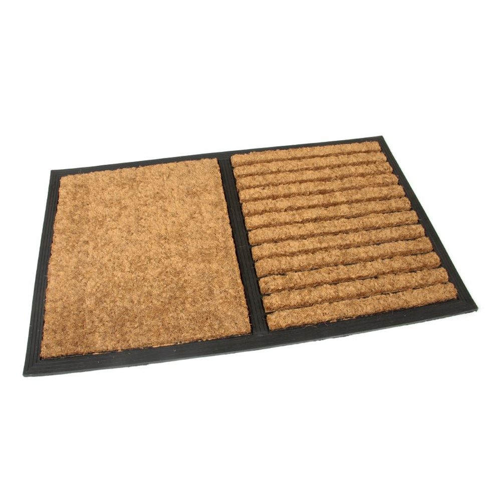 Kokosová čistiaca vonkajšia vstupná rohož Stripes - Rectangle - dĺžka 45 cm, šírka 75 cm, výška 2,3 cm Vonkajšia gumová vstupná čistiaca rohožka s kokosovým vláknom je vhodná na odstránenie drobných nečistôt. Túto rohožku najčastejšie vidíte ako pri vstupoch do rodinných domov a komerčných budov. Rohož je zároveň pekným designovým doplnkom. Najčastejšie použitie samostatná vstupná čistiaca rohož pred dverami do budovy dizajnový doplnok Vlastnosti veľmi odolná gumová rohož s dlhou životnosťou aj v náročných vonkajších podmienkach efektívne čistí obuv od drobných nečistôt ako je bahno a prach Technický popis design: pruhy - obdĺžnik materiál: guma, prírodné kokosové vlákno dĺžka: 45 cm šírka: 75 cm výška: 2,3 cm hmotnosť: 2,4 kg
