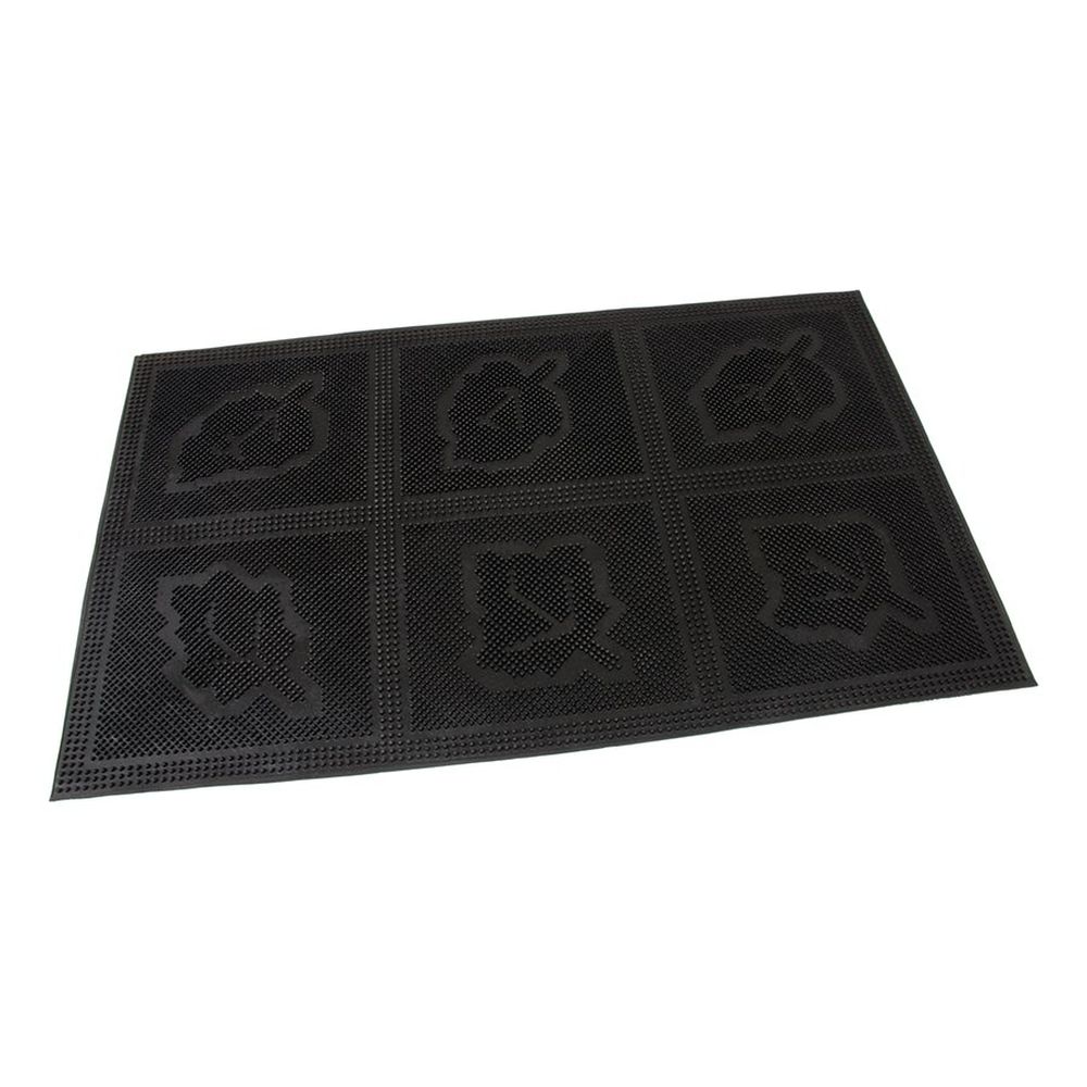 Gumová čistiaca vonkajšia vstupná rohož Leaves - Squares - dĺžka 45 cm, šírka 75 cm, výška 0,6 cm Malá gumová rohožka s kefovým efektom vhodná na odstránenie drobných nečistôt - bahno, tráva, zvyšky snehu. Rohožka je najčastejšie pred dverami bytov, rodinných domov či kancelárií. Vďaka svojmu designu často slúži aj ako dizajnový doplnok, poprípade ako odkladacia plocha pre mokrú obuv. Najčastejšie použitie malá rohožka pred dvere do bytu, rodinného domu, kancelárie slúži aj ako dizajnový doplnok niekedy používaná aj ako odkladacia plocha pre mokrú obuv. vode Technický popis design: listy / štvorce materiál: guma (guma) dĺžka: 45 cm šírka: 75 cm výška: 0,6 cm hmotnosť: 1,2 kg