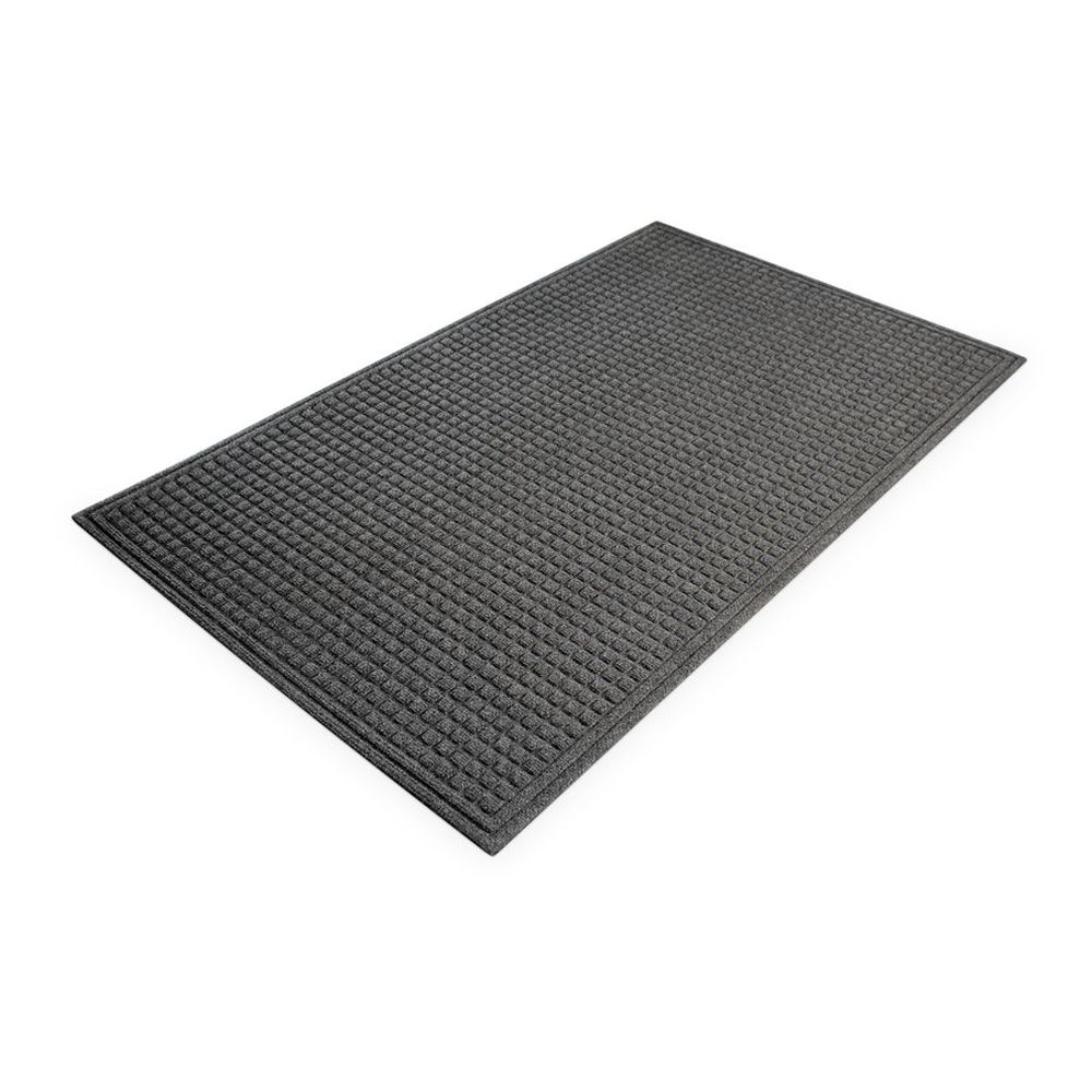 Šedá plastová vstupná rohož - dĺžka 120 cm, šírka 180 cm, výška 1 cm Robustná vstupná vnútorná rohož kompletne vyrobená z recyklovaného materiálu. Podložka je vyrobená z recyklovanej gumy, ktorá zamedzuje pohybu rohože po podlahe. Povrch rohože je vyrobený z polyesterového vlákna z recyklovaných plastových fliaš. Vlákna dobre čistia podrážky od nečistôt a sutiny. Rohož je po krajoch ukončená lemovaním. Vlastnosti odolnosť voči UV žiareniu vlákno rohože je vyrobené z recyklovaných plastových fliaš Technický popis farba: šedá materiál: recyklované PVC fľaše, guma, polyesterový koberec, SBR dĺžka: 120 cm šírka: 180 cm výška: 1 cm hmotnosť: 3,7 kg / m?
