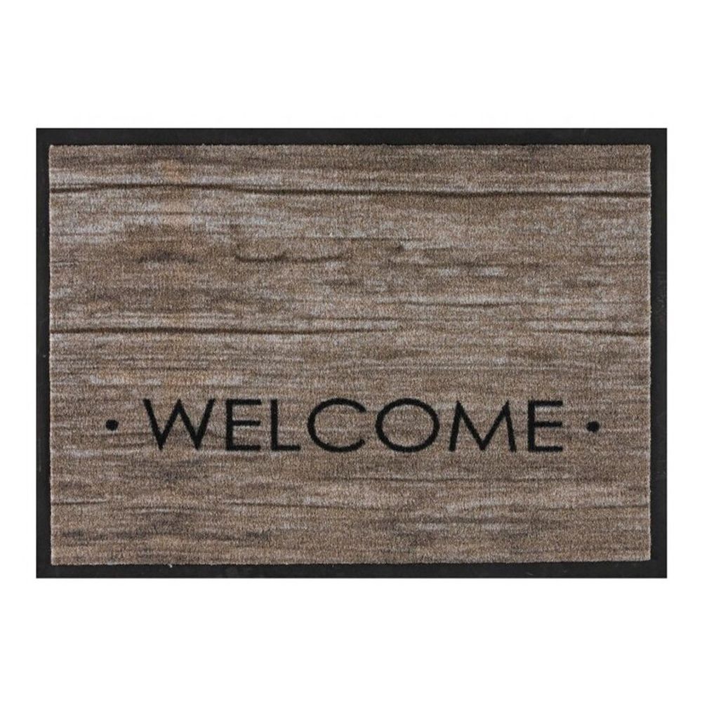 Hnedá prateľná vstupná rohož Welcome - dĺžka 60 cm, šírka 80 cm, výška 0,7 cm Vnútorná vstupná čistiaca rohož je štýlová rohožka so zaujímavým motívom. Nielenže dobre čistí obuv od drobných nečistôt ale po značnom zašpinení ju môžete vyprať. Aj vďaka použitým mikrovláknom je rohož rýchloschnúca a vďaka protišmykovej úprave Microflex back\u2122 Vám nehrozí riziko podkĺznutia rohože. Svojím moderným dizajnom oživí akýkoľvek vstup do domu, bytu či kancelárie. Najčastejšie použitie vstupná čistiaca rohožka pred dvere bytu, domu či kancelárie pre mnohých slúži ako dizajnový doplnok Vlastnosti efektívne čistí obuv od drobných nečistôt vnútorná čistiaca rohož protišmyková úprava Microflex back\u2122 na spodnej strane rohože rýchloschnúci vďaka mikrovláknom ľahká údržba je možné prať v práčke pri teplote 3 C Technický popis design: Welcome farba: hnedá materiál: 100% polyamid dĺžka: 60 cm šírka: 80 cm výška: 0,5 cm hmotnosť: 0,8 kg objemová hmotnosť: 300 gr/m?