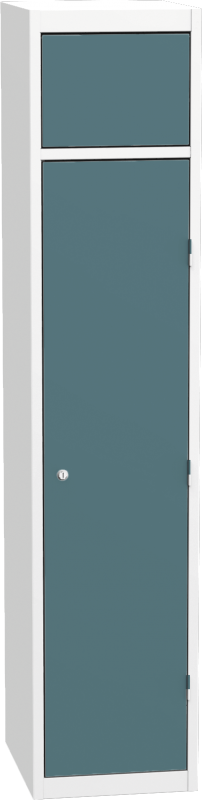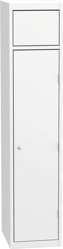 Zberná skriňa na výmenu pracovných odevov Skriňa je určená na zber použitých pracovných odevov. Horná časť skrinky slúži na vhod použitej bielizne, v spodnej uzamykateľnej časti je zavesené vrece na zber. Spodná časť je vo vnútri vybavená perforovanou lištou s háčikmi na uchytenie vreca na použité odevy. Centrálny rám skríň SVO_0x_06/08/10 a spodné dvere skríň SVO_0x_01 sú uzamykané zámkami s rovnakými kľúčmi. Skriňa je vo vhadzovacej časti vybavená šmykľavkou pre ľahké premiestnenie špinavej bielizne do vreca. Horné dvierka sú vhadzovacie, zavesené na vnútorných čapoch. Spodné dvere sú uzamykateľné, zavesené aj na vnútorných čapoch. Horné aj spodné dvere sú vyrobené z oceľového plechu hr. 1 mm. Šatníková skriňa je štandardne vybavená cylindrickým zámkom s dvoma kľúčmi alebo otočným uzáverom pre visiaci zámok (visací zámok nie je súčasťou dodávky). Zamykanie dverí je jednobodové, umiestnené uprostred dverí. Centrálny rám skríň SVO_0x_06/08/10 a spodné dvere skríň SVO_0x_01 sú uzamykané zámkami s rovnakými kľúčmi. Cylindrický zámok má 2000 kombinácií a umožňuje dodanie hlavného kľúča. Šatníková skriňa je možné vybaviť šikmou strechou, tá zabraňuje odkladaniu odpadkov na strechu skrine a uľahčuje jej čistenie.