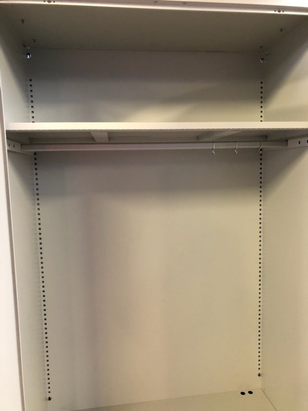1x polica s nosnosťou 60 kg - prestaviteľná po 25 mm, pod policou plochooválny tyč s piatimi kovovými hákmi na ošatenie (na tyč možno zavesiť ramienka).