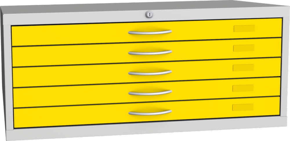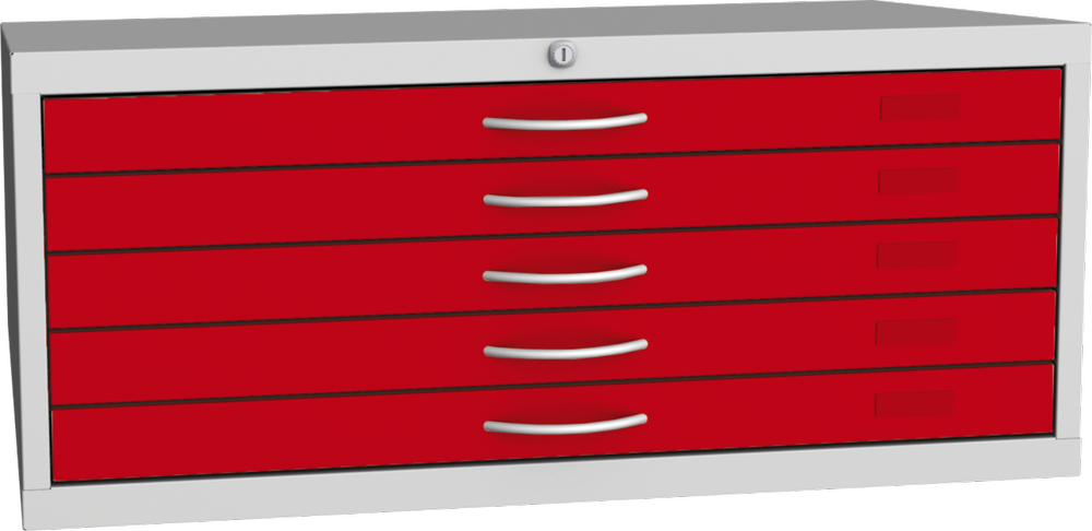 Skriňa na výkresy formát A1 Zásuvky sú vybavené guličkovými plnovýsuvmi, majú vpredu pridržiavač a vzadu kryciu lištu proti rolovaniuZásuvky sú vybavené guličkovými plnovýsuvmi, majú vpredu pridržiavač a vzadu kryciu lištu proti rolovaniu výkresov. Zásuvky majú na prednej strane plastové štítky pre menovky a vnútorný priestor je možné rozdeliť deliacimi priečkami až na formát A4. * v záložke "na stiahnutie" nájdete na stiahnutie technický výkres zásuviek tohto produktu. Výkresová skriňa je opatrená centrálnym zamykaním, pri vysunutí jednej zásuvky sú všetky ostatné blokované. Pre pohodlnejšie používanie je možné výkresové skrine vybaviť kovovým podstavcom z oceľových profilov. Výšku podstavca vyrobíme podľa priania zákazníka.