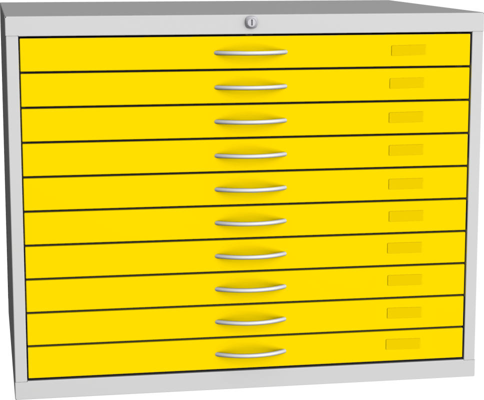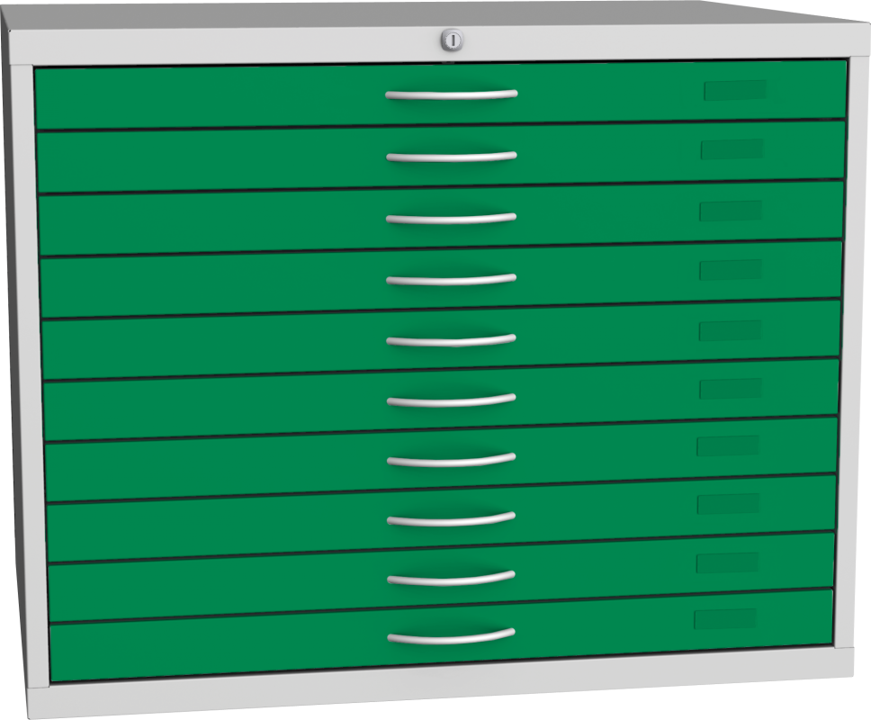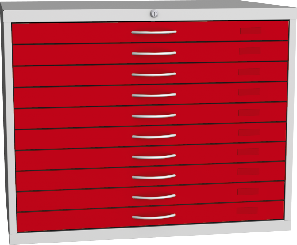 Skriňa na výkresy formát A1 Zásuvky sú vybavené guličkovými plnovýsuvmi, majú vpredu pridržiavač a vzadu kryciu lištu proti rolovaniuZásuvky sú vybavené guličkovými plnovýsuvmi, majú vpredu pridržiavač a vzadu kryciu lištu proti rolovaniu výkresov. Zásuvky majú na prednej strane plastové štítky pre menovky a vnútorný priestor je možné rozdeliť deliacimi priečkami až na formát A4. * v záložke "na stiahnutie" nájdete na stiahnutie technický výkres zásuviek tohto produktu. Výkresová skriňa je opatrená centrálnym zamykaním, pri vysunutí jednej zásuvky sú všetky ostatné blokované. Pre pohodlnejšie používanie je možné výkresové skrine vybaviť kovovým podstavcom z oceľových profilov. Výšku podstavca vyrobíme podľa priania zákazníka.